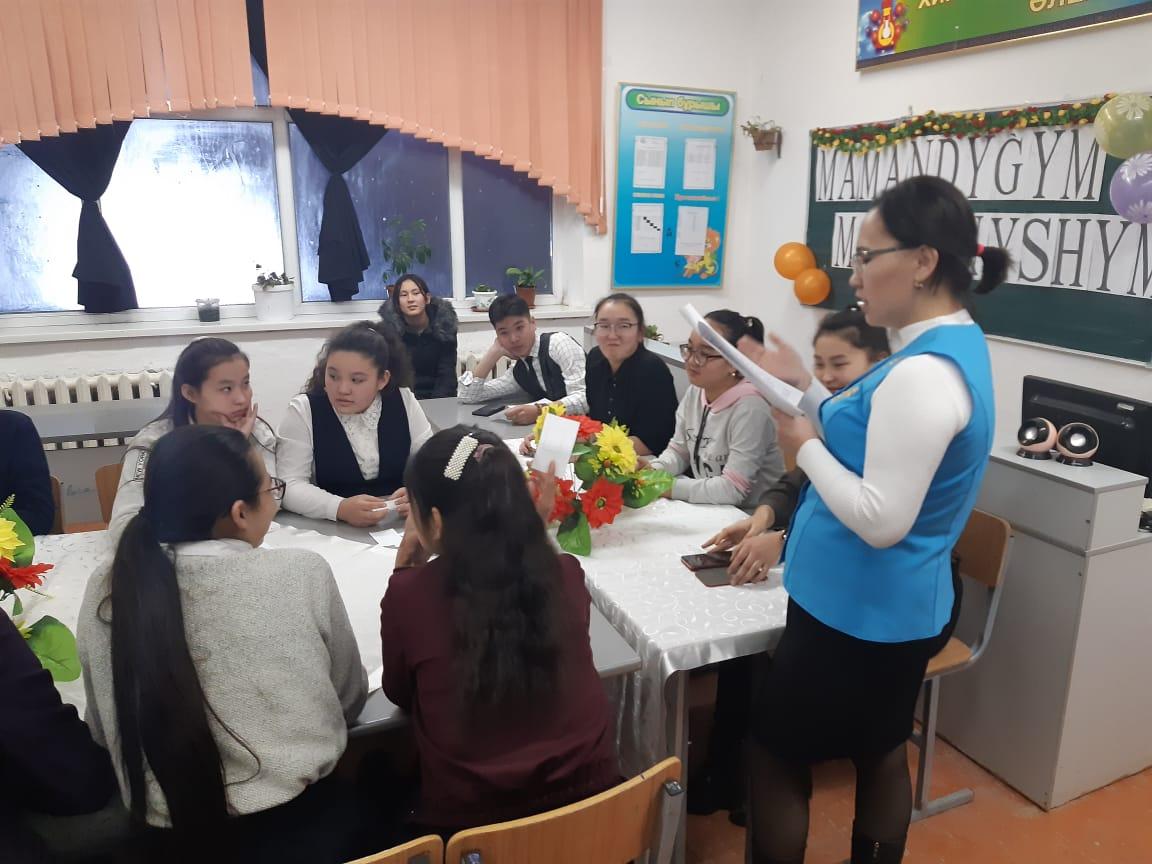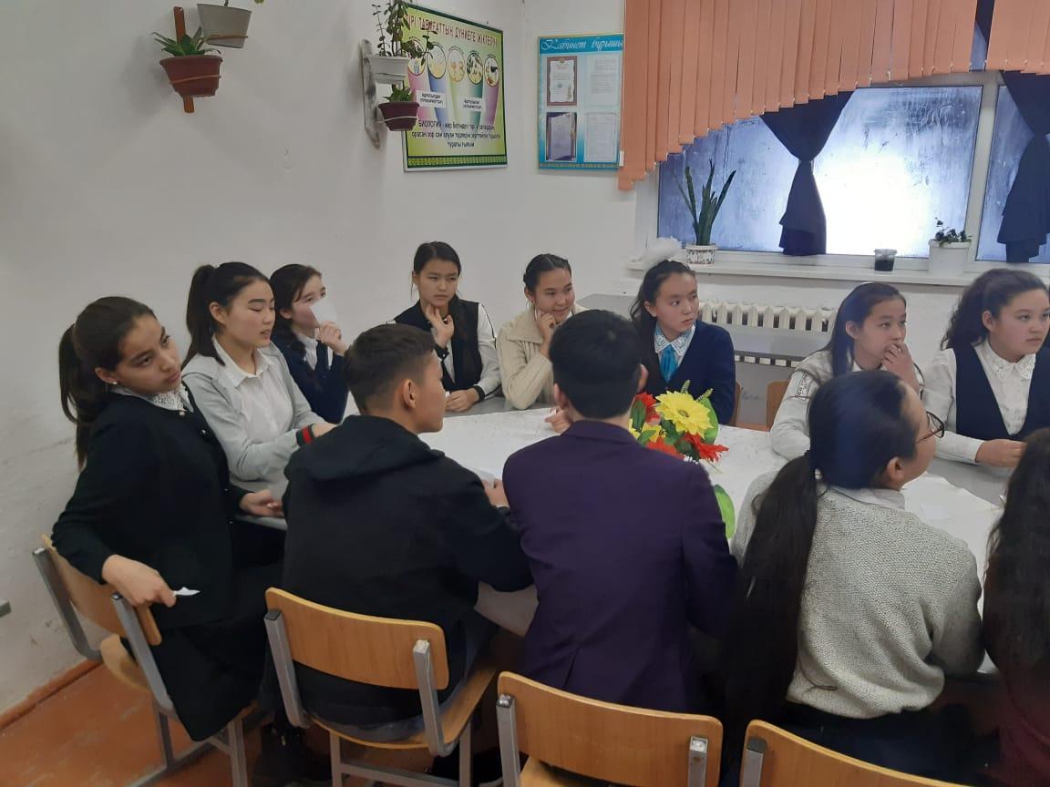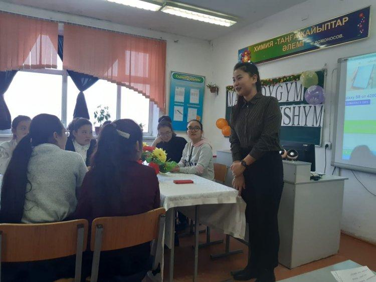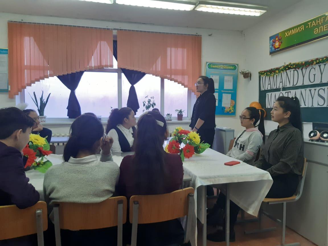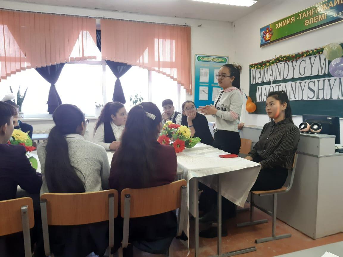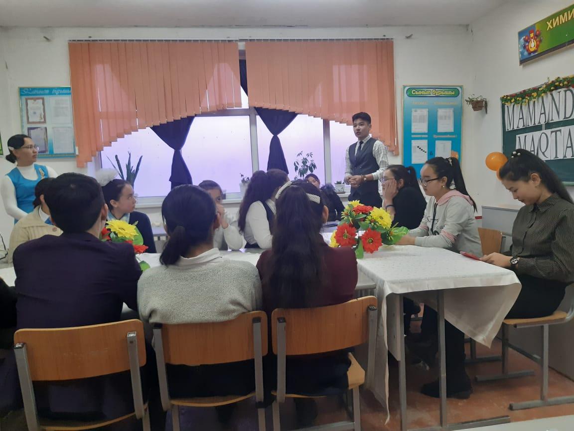 - Оқушылардың қоғамға деген азаматтық позициясын қалыптастырып отансүйгіштікке тәрбиелеу. Мектеп директоры Е.Өскенбай алтын ұя мектебіне сан тараптан сағына жеткен түлектерге ақ тілегін айтып, бүгінгі бітіргелі тұрған оқушыларға мамандық таңдауда қателеспеу керектігін айтт.Әр мамандықта оқып жүрген ұл қыздар өздерінің студенттік өмірімен, болашақ жоспарымен 9-11 сынып оқушыларымен бөлісті.